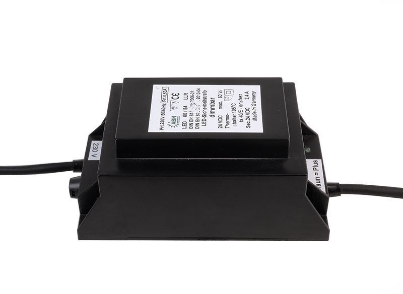 • ABN Netzgerät, LED Sicherheitstransformator, DIM, CV, 60VA/24V DC, dimmbar: Phasenanschnitt, Eingangsspannung: 220-240V AC/50-60Hz, Ausgangsspannung: 24V DC, Ausgangsstrom: 500-2500 mA, 12,00-60,00 W