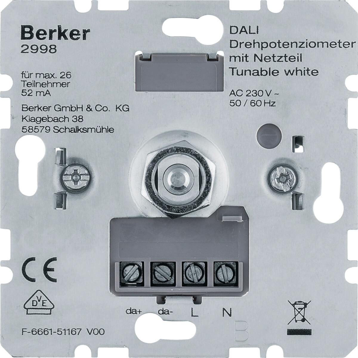 Berker 2998 DALI Drehpotenziometer Tunable white mit Netzteil. Softrastung. Lichtsteuerung