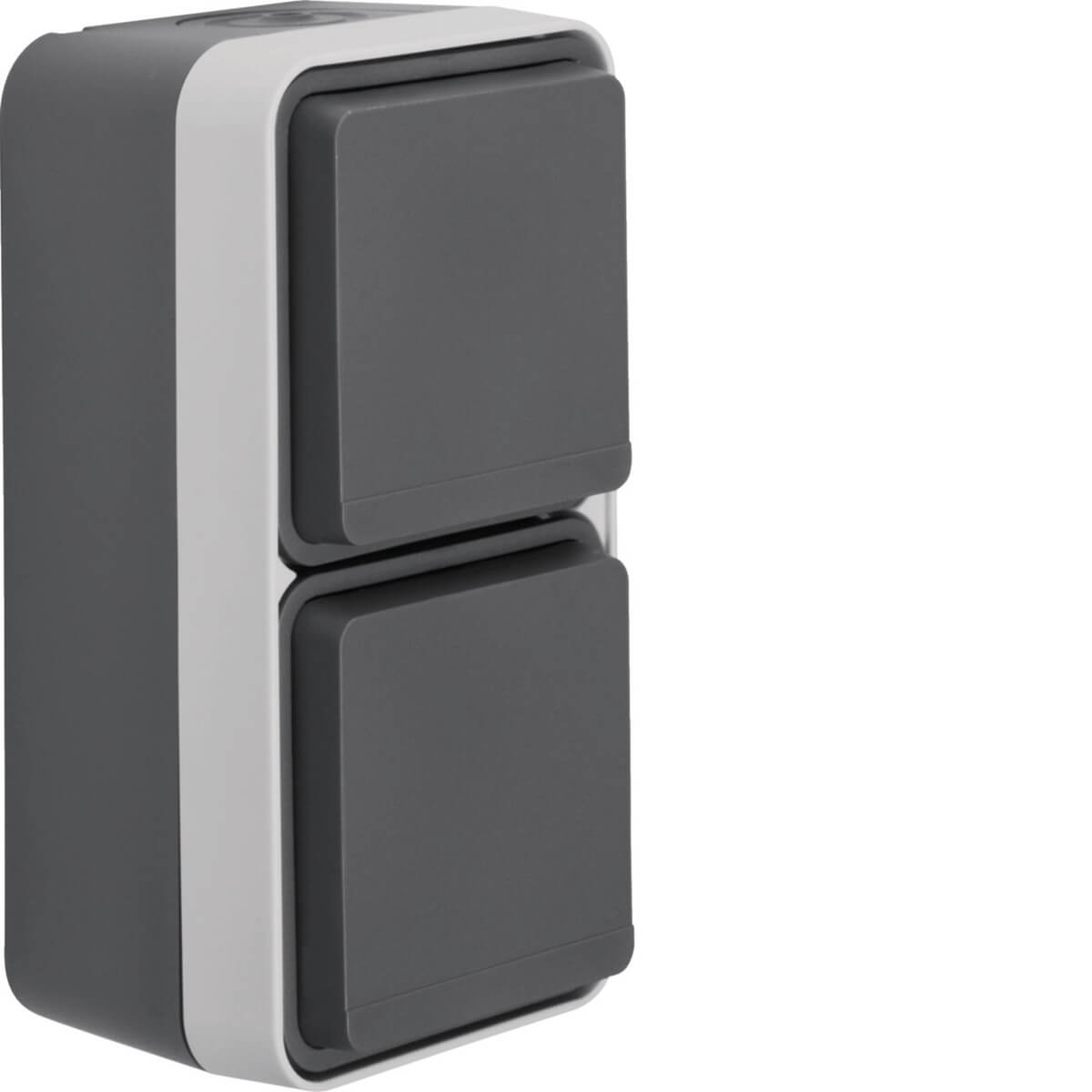 Steckdose Schuko 2fach senk m. Klappdeckel mit erh. Berührungsschutz. W.1. grau