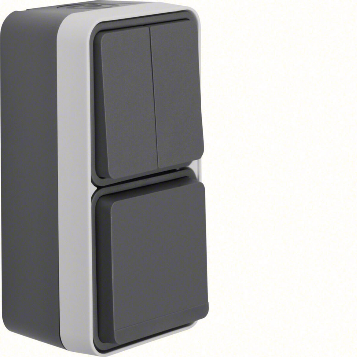 Berker 47903525 Kombination Serienschalter/Steckdose Schuko mit Klappd. AP. W.1. grau matt