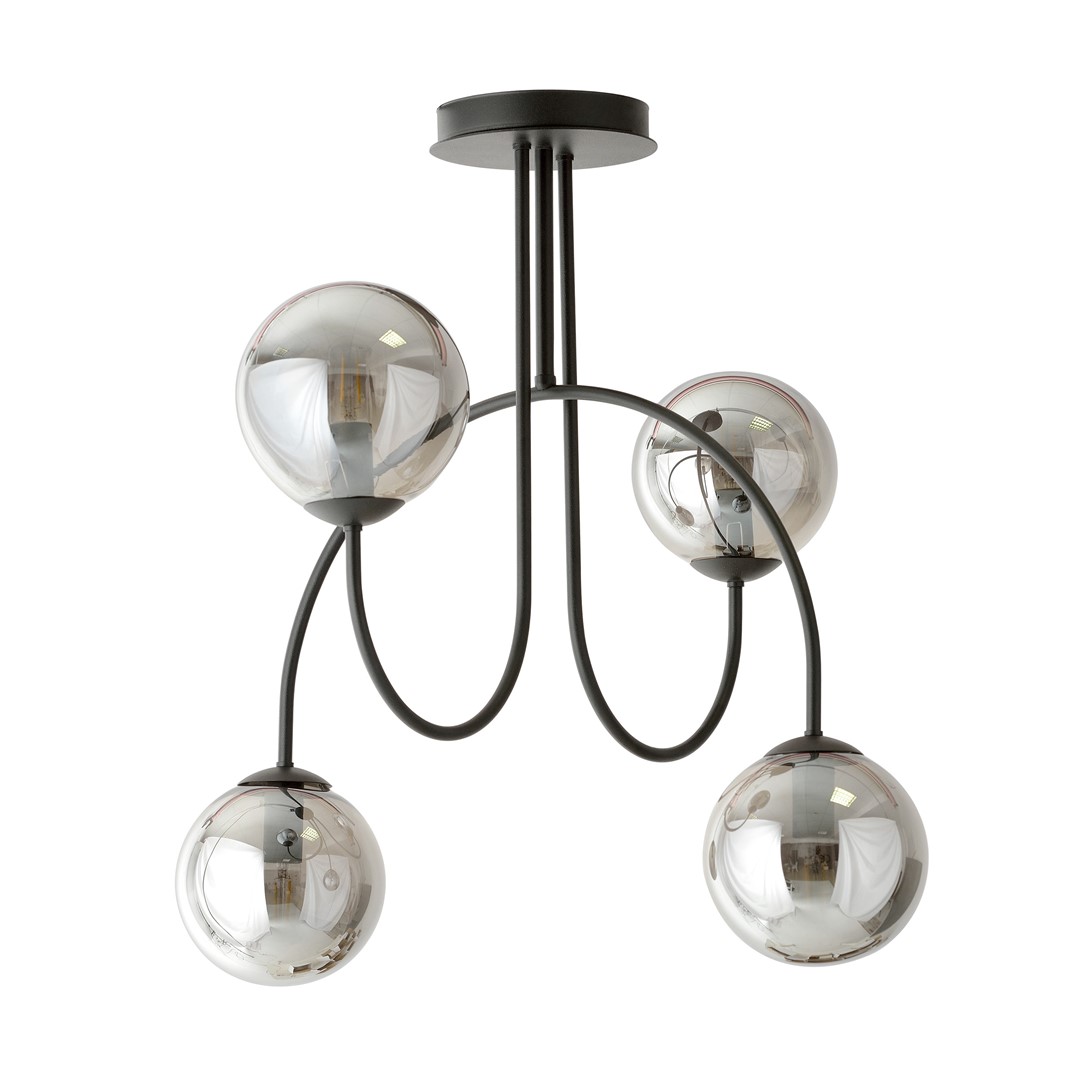 • Tauchen Sie ein in die Welt des Minimalismus und des modernen Designs mit der Deckenleuchte Jonquira. Sie ist aus schwarzem Stahl gefertigt und harmoniert perfekt mit dem transparenten, kugelförmigen Glasschirm. Die einzigartige halbkreisförmige Biegung verleiht der Leuchte einen unverwechselbaren Charakter und bewahrt gleichzeitig Schlichtheit und Eleganz. Diese Leuchte ist die perfekte Wahl für alle, die eine Beleuchtung suchen, die Funktionalität, Ästhetik und Modernität vereint.
