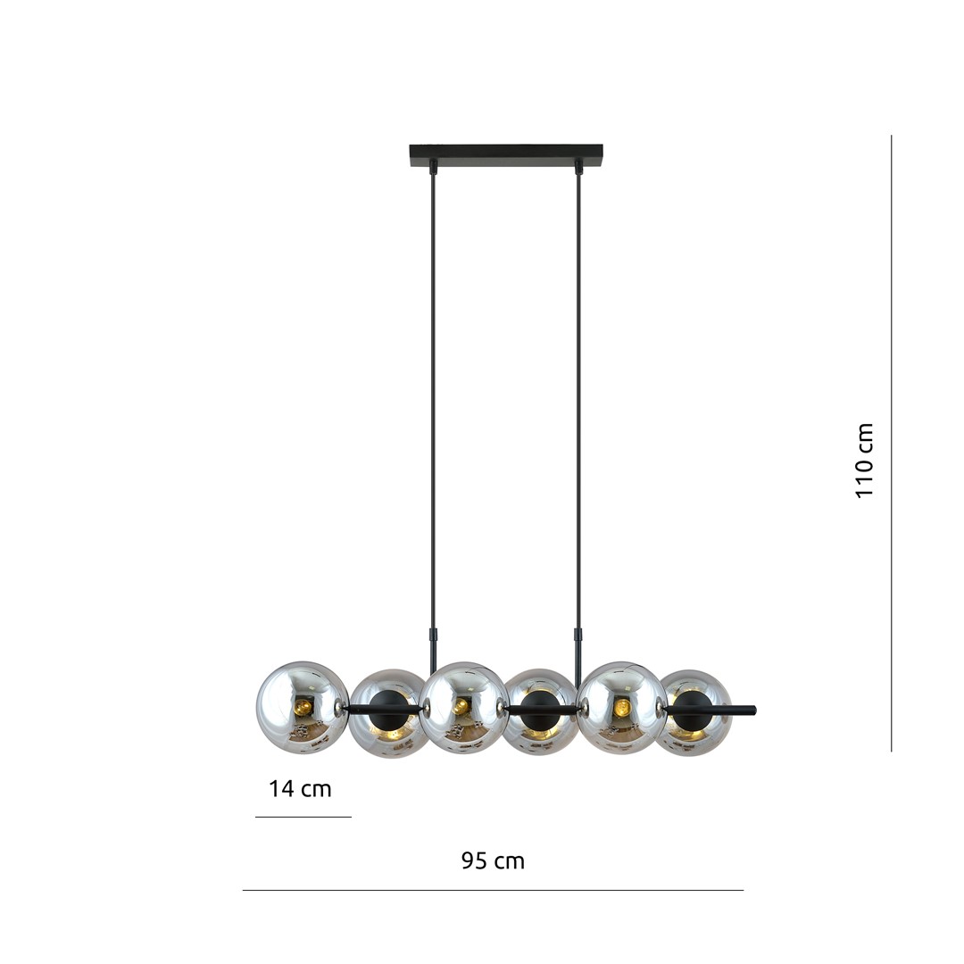 Bioledex Vibaron Pendelleuchte 6-fach E14 schwarz anthrazit 95x110x29cm Made in Europe