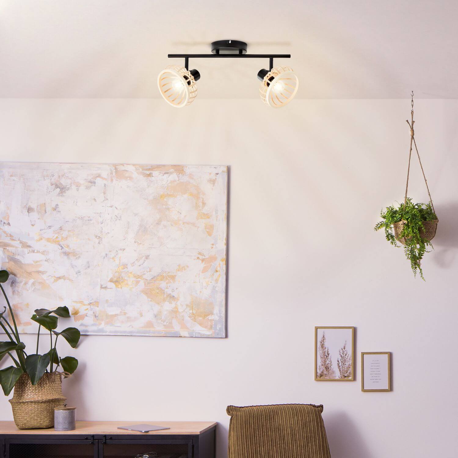 Preview: Brilliant Norah Spotrohr, 2-fach E14 Schwarz Natur 99738/76