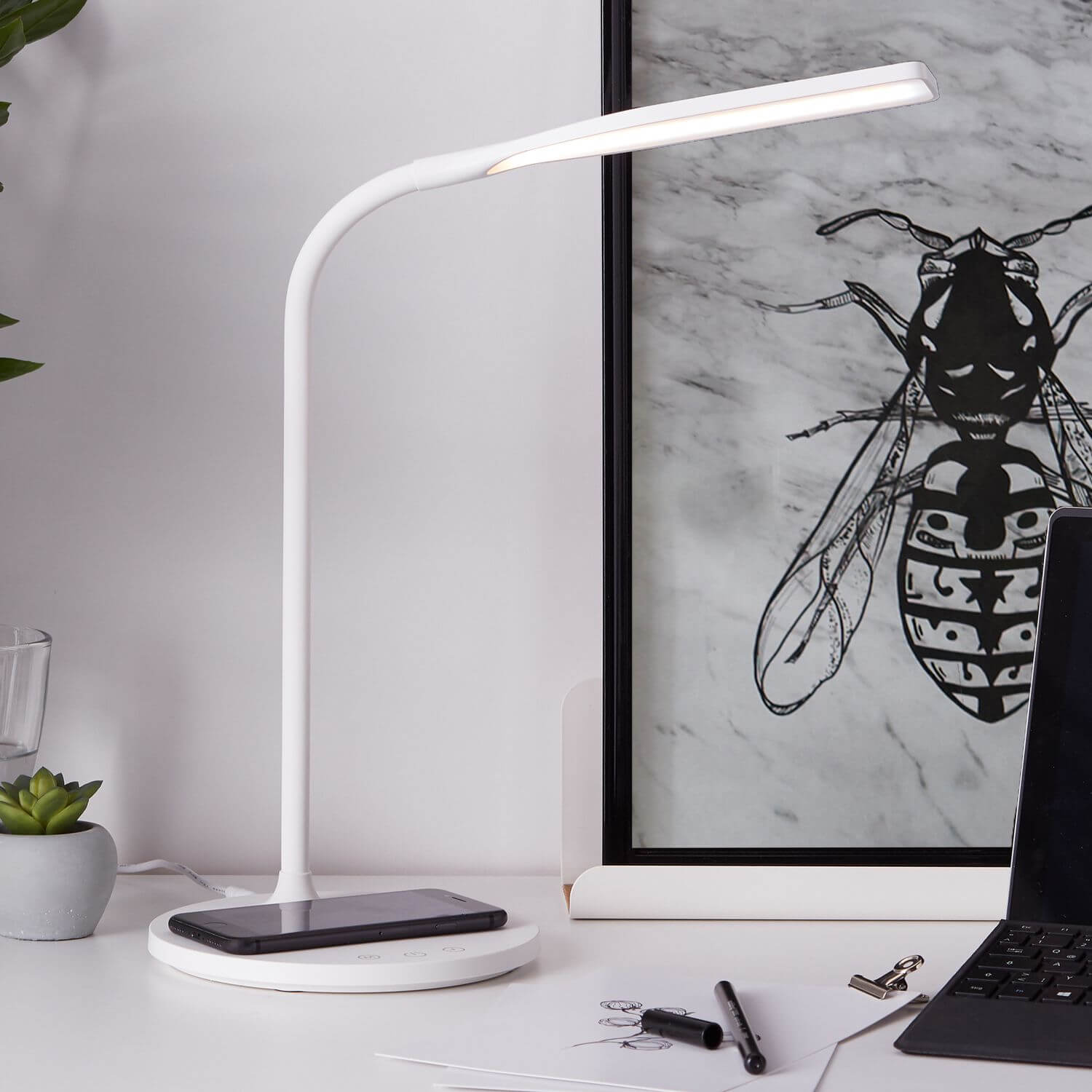 • INDUKTIONS-LADEFUNKTION - Diese Leuchte spendet nicht nur Licht, sondern hat auch eine eingebaute Induktionsladefläche, wodurch kompatible Mobilgeräte kabellos aufgeladen werden können.