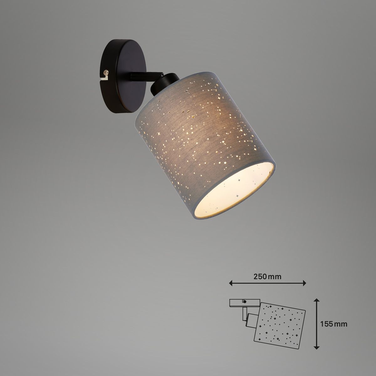 Mobile Preview: Briloner STOFA E27 Wandleuchte Sternendekor Grau-Schwarz