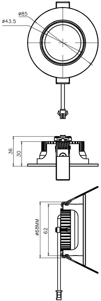 Ausschnittsmaß Durchmesser: 68 mm