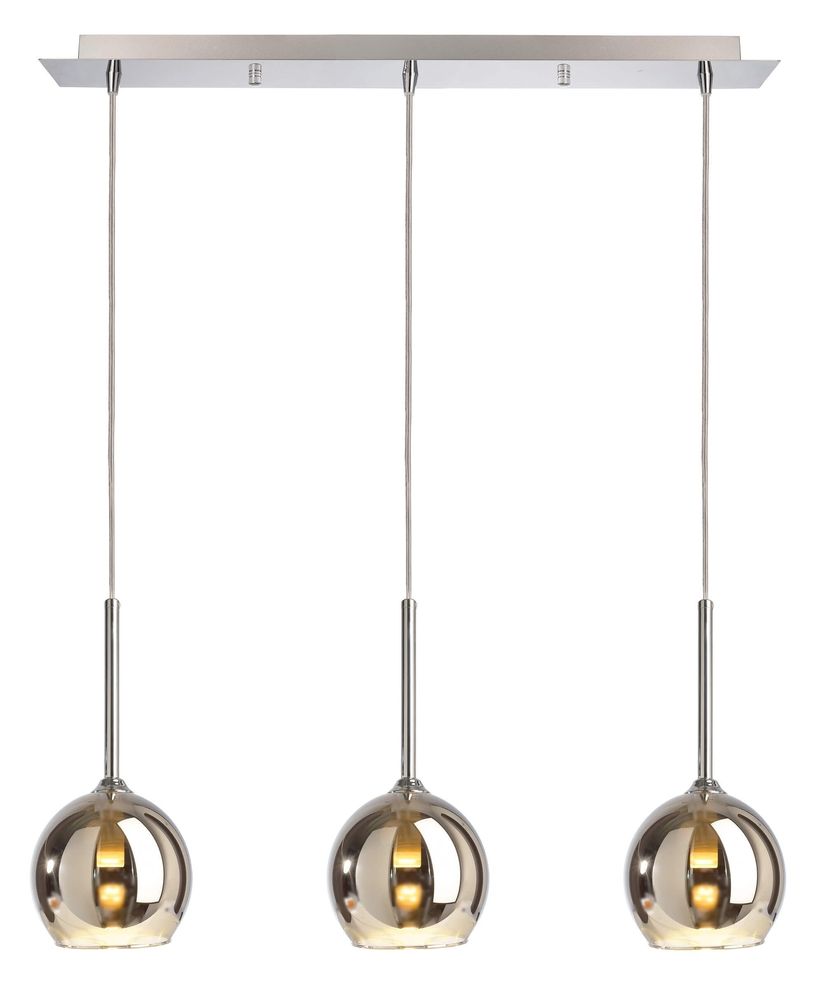 • Verspielte Eleganz - Die 3er-Pendelleuchte „Bunda“ basiert auf drei Halogen-Lichtquellen in G9-Fassungen mit jeweils maximal 28,00 Watt, die in 1,20 m von der Decke abhängen. Die Leuchtenkörper bestehen dabei aus verspiegeltem Rauchglas und erzeugen ein elegantes Licht im Ess- oder Wohnbereich.