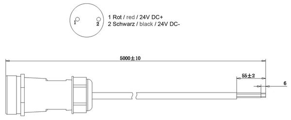 Deko-Light Weipu HQ 12/24/48V Einspeisekabel 2-polig 5000mm, IP67 940039
