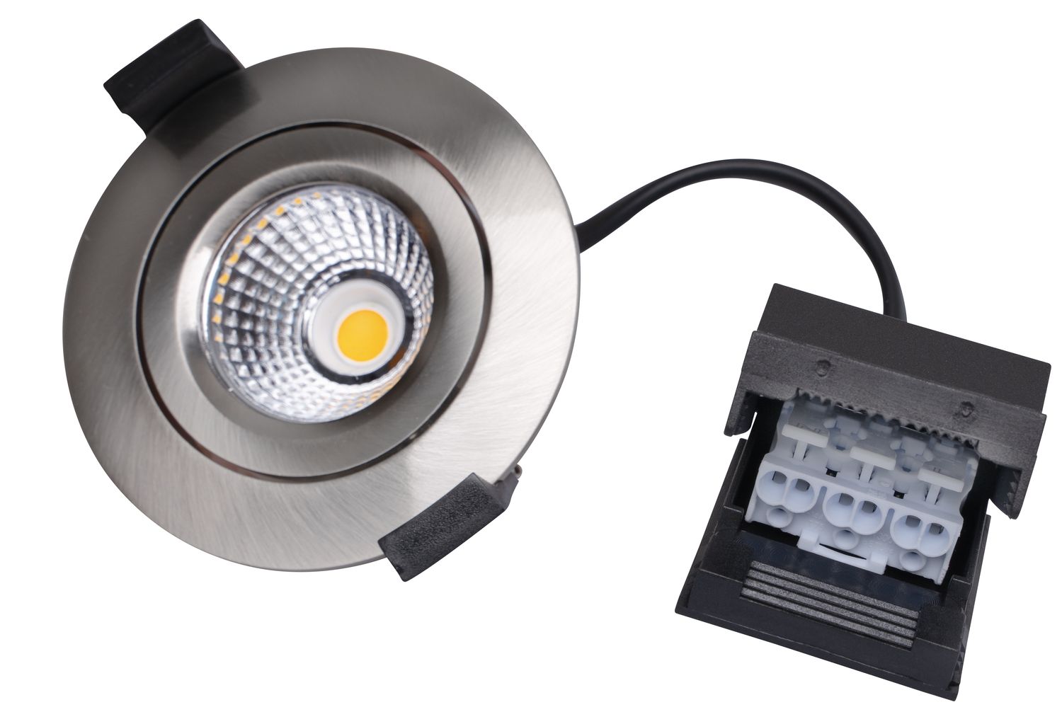 Spritzwassergeschütztes IP44 Downlight mit extra flachem Aluminiumgehäuse und exzellenter Haptik Schnelle, platzsparende Montage mit durchverdrahtbarer Schnellanschlussbox und integriertem Netzteil Hervorragende Dimmung mit der neuen DIMtoZERO Funktion. Phasenabschnittsdimmbares Netzteil (0-100%) Angenehmes und blendfreies Licht durch Reflektortechnik Natürliches Farbempfinden aufgrund des extra hohen CRI-Wertes >92 Stabile Montageklammern ermöglichen eine einfache Montage in Deckenausschnitten von 68-75mm Idealer Ersatz für Halogeneinbaustrahler MR16/GU10 Kostengünstig auch in DALI-Systeme integrierbar mit DALI-Phasenabschnittsdimmer Art.Nr.5425 Phasenabschnittsdimmer Art.Nr.5180