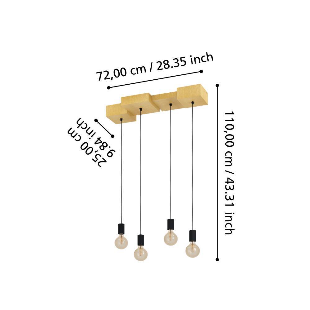 Eglo 43799 HALKIN E27 4-fach Hängeleuchte 720x250mm Braun Schwarz
