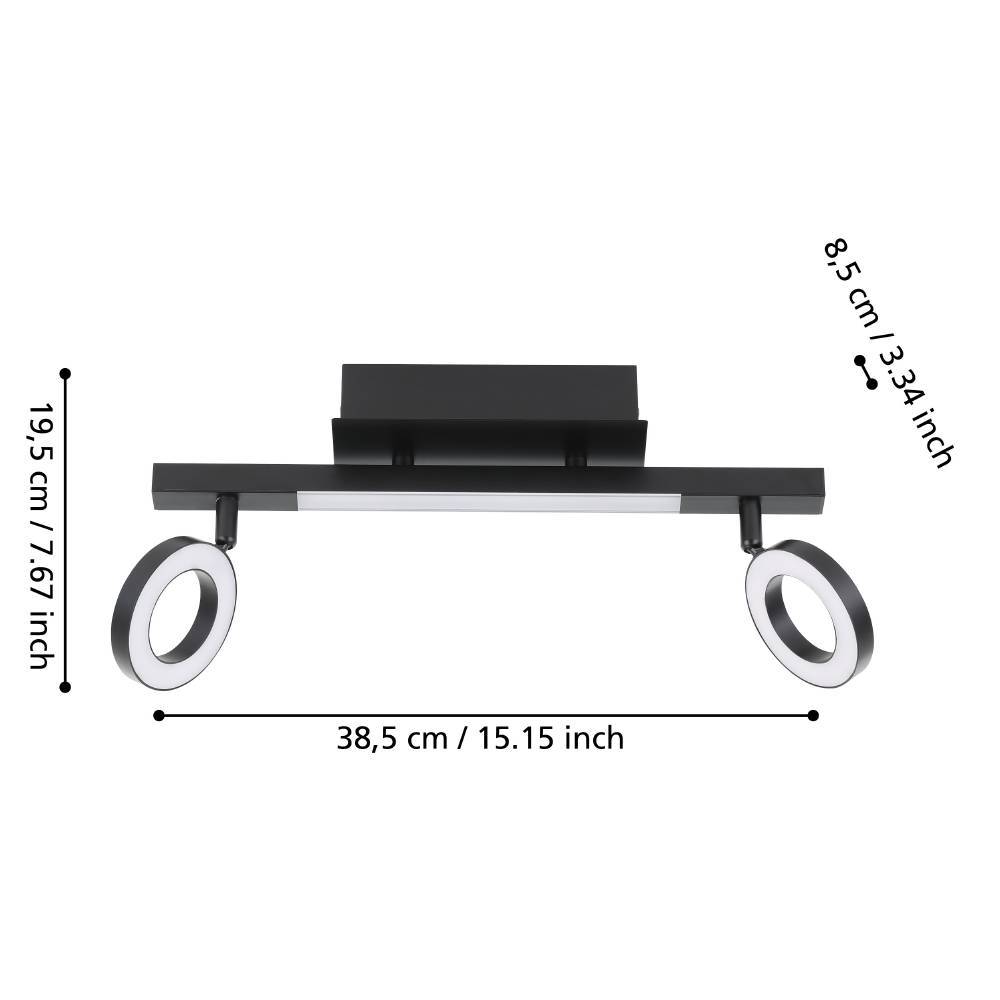 • Eglo 900514 CARDILLIO 2 LED 2-fach Spotleuchte 2x3,2W, 1x3,3W 385x85mm Schwarz Satiniert warmweiss