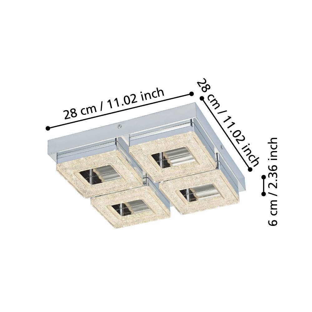 • Eglo 95657 FRADELO LED 4-fach Deckenleuchte Wandleuchte 4x3,5W 280x280mm Chrom Klar warmweiss