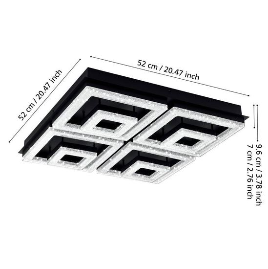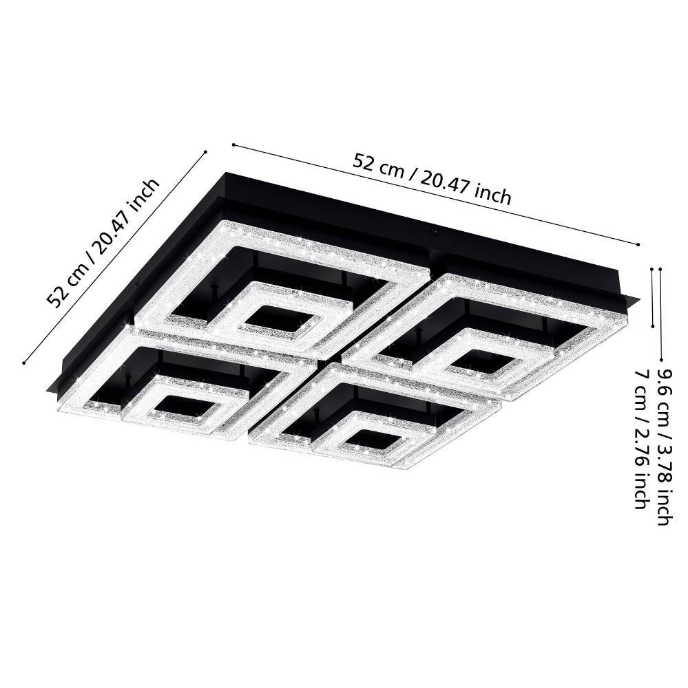 • Eglo 99328 FRADELO 1 LED Deckenleuchte 46,5W 520x520mm Schwarz Klar warmweiss