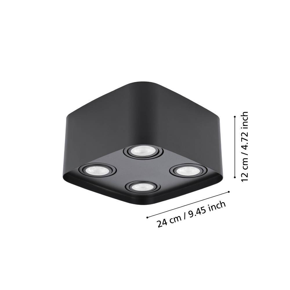 Eglo 99675 CAMINALES-Z LED GU10 4-fach Deckenleuchte 4x4,9W 240x240mm Schwarz dimmbar