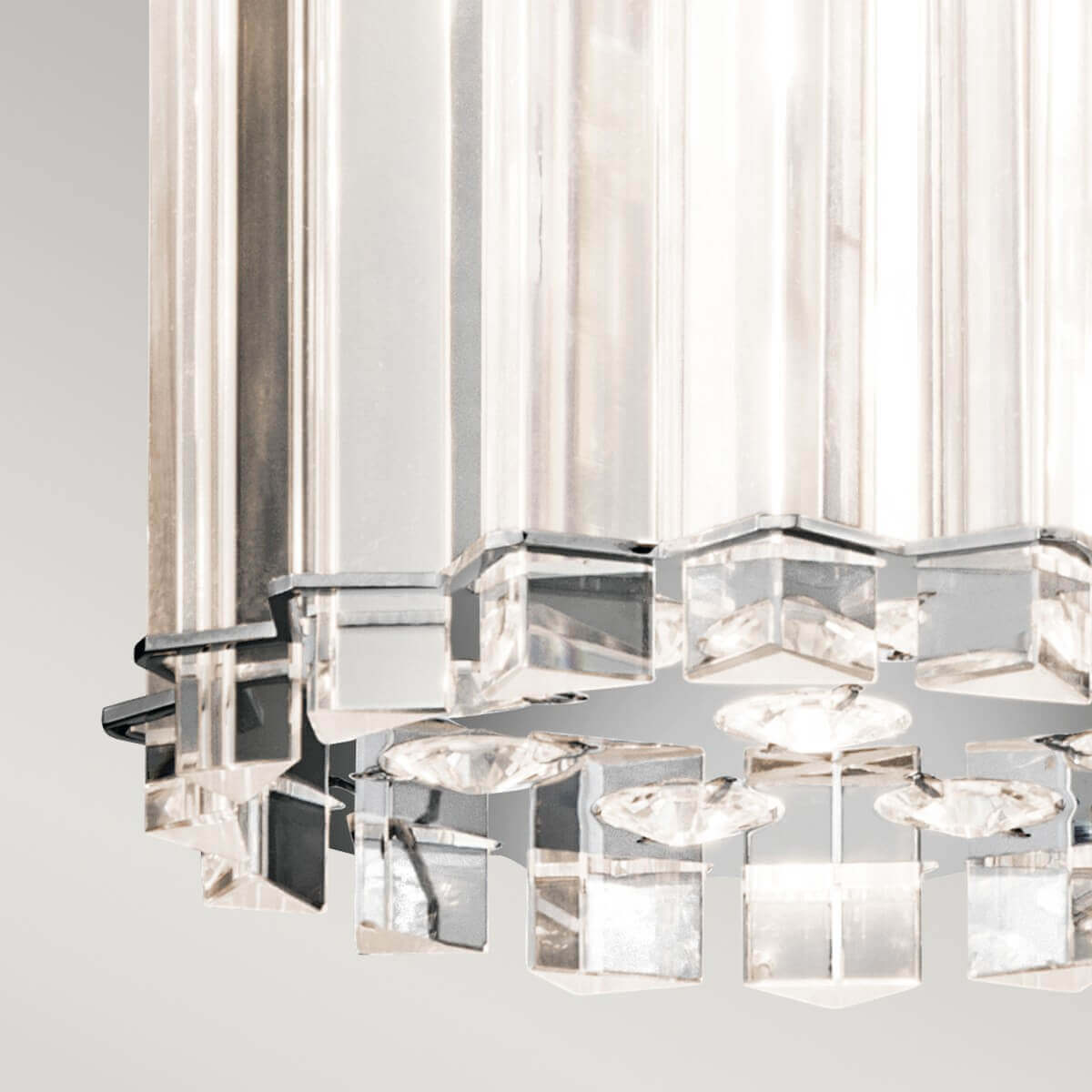 • Die Crystal Skye Kollektion besteht aus dreieckigen Kristallprismen, die in verchromten Details ruhen und das Licht auf hundert verschiedene Arten reflektieren. Abgerundete Kristalle an der Unterseite reflektieren das innere Licht. Die Leuchten sind nach IP44 zertifiziert und vollständig mit LED ausgestattet, so dass sie sowohl im Badezimmer als auch in allen anderen Räumen des Hauses eingesetzt werden können.