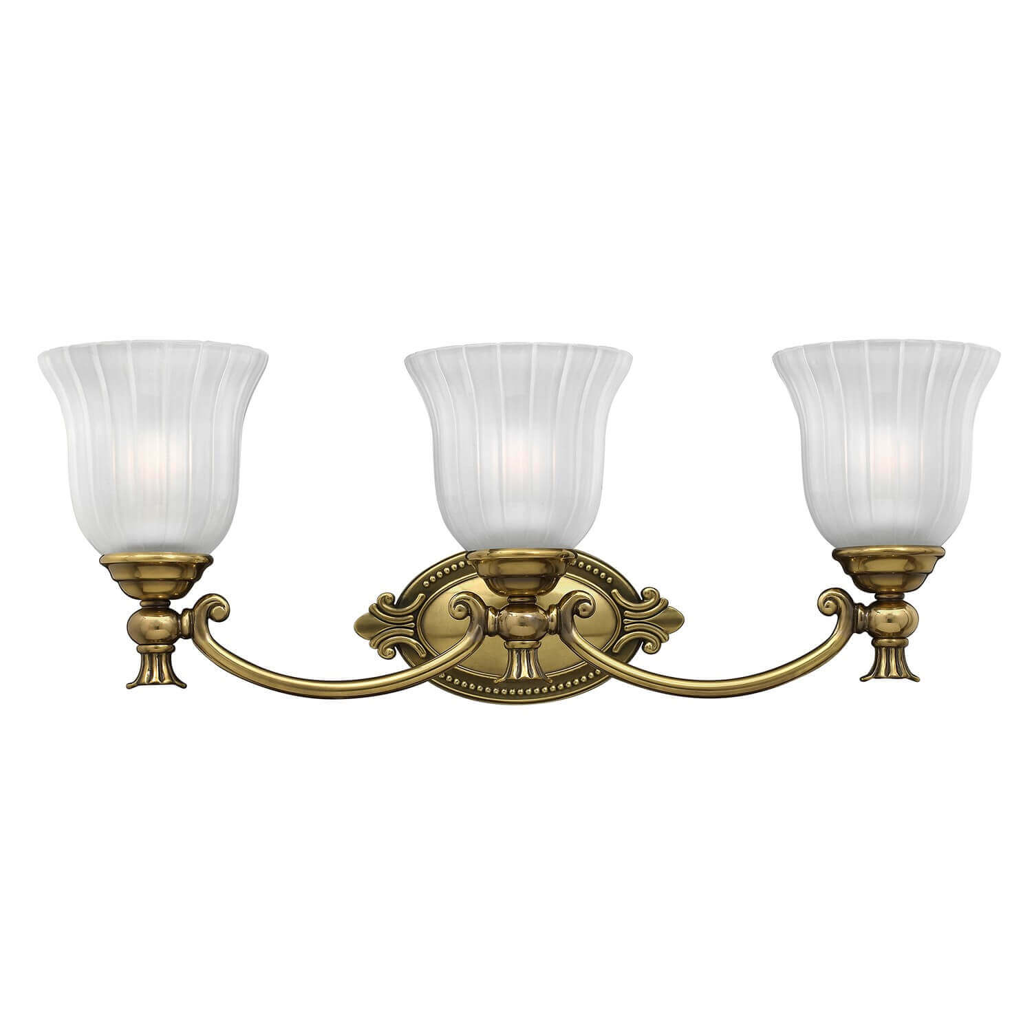 • Francoise bietet stilvolle Eleganz mit dekorativen Gussdetails und mattiertem, geripptem Glas, das seine klassische Anziehungskraft unterstreicht.