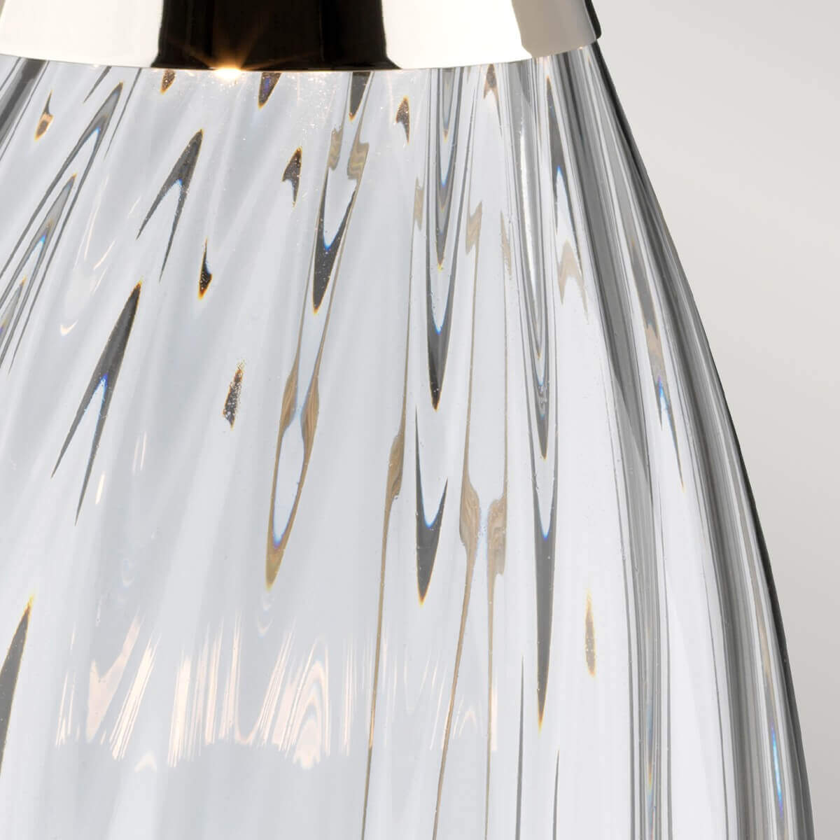 • Der elegante, fließende Schwung des mundgeblasenen Glases von Lena bildet zusammen mit dem Metallgestell aus poliertem Nickel ein eindrucksvolles Bild. Sie ist mit dem Dual-Lit-System von Elstead kombiniert, einem 4-Wege-Schalter, der sowohl den Schirm als auch den Sockel beleuchtet (GU10 im Sockel). Die Schirme werden in Großbritannien mit satiniertem, glattem Stoff und matt-silbernem Laminat gefertigt.