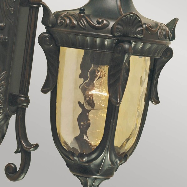 • Unverwechselbare Details kennzeichnen diese komplette Serie von historischen Laternen, die in drei Größen erhältlich sind: klein, mittel und groß. Sie eignen sich ideal für Sockel-, Pfosten-, Wand- und Hängeleuchten sowie für einen attraktiven Laternenpfahl. Die Serie ist aus mundgeblasenem Bernsteinglas und mit einer Patina aus alter Bronze versehen.