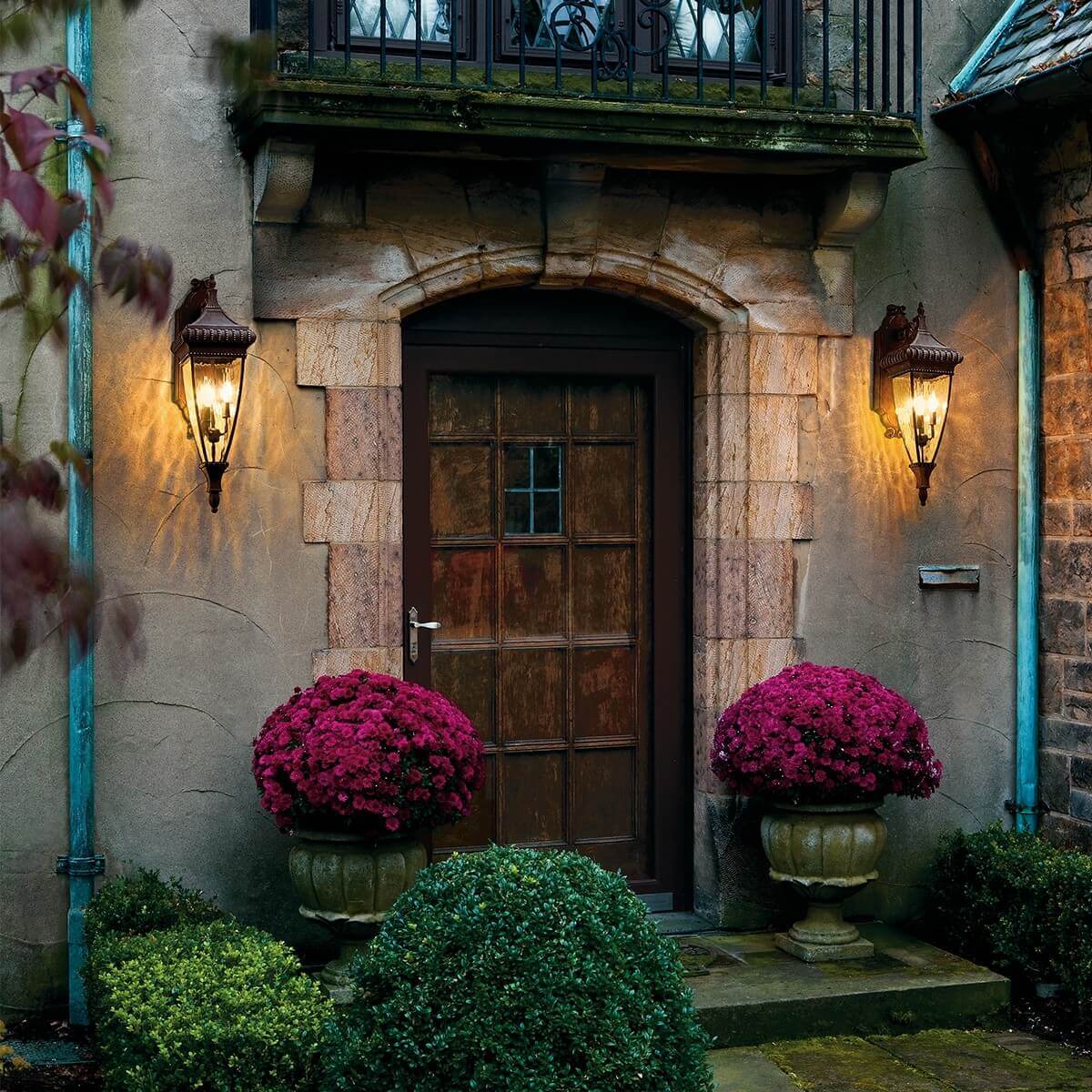 • Die Kollektion Venetian Rain ist eine traditionelle Option für den Außenbereich, die sich auf das reiche Erbe der Renaissance beruft. Verschnörkelte Dekorationen und üppige Kurven spiegeln die Geschichte der italienischen Handwerkskunst wider. Dieses Design in gebürsteter Bronze verleiht jedem Raum Tiefe und Dramatik.