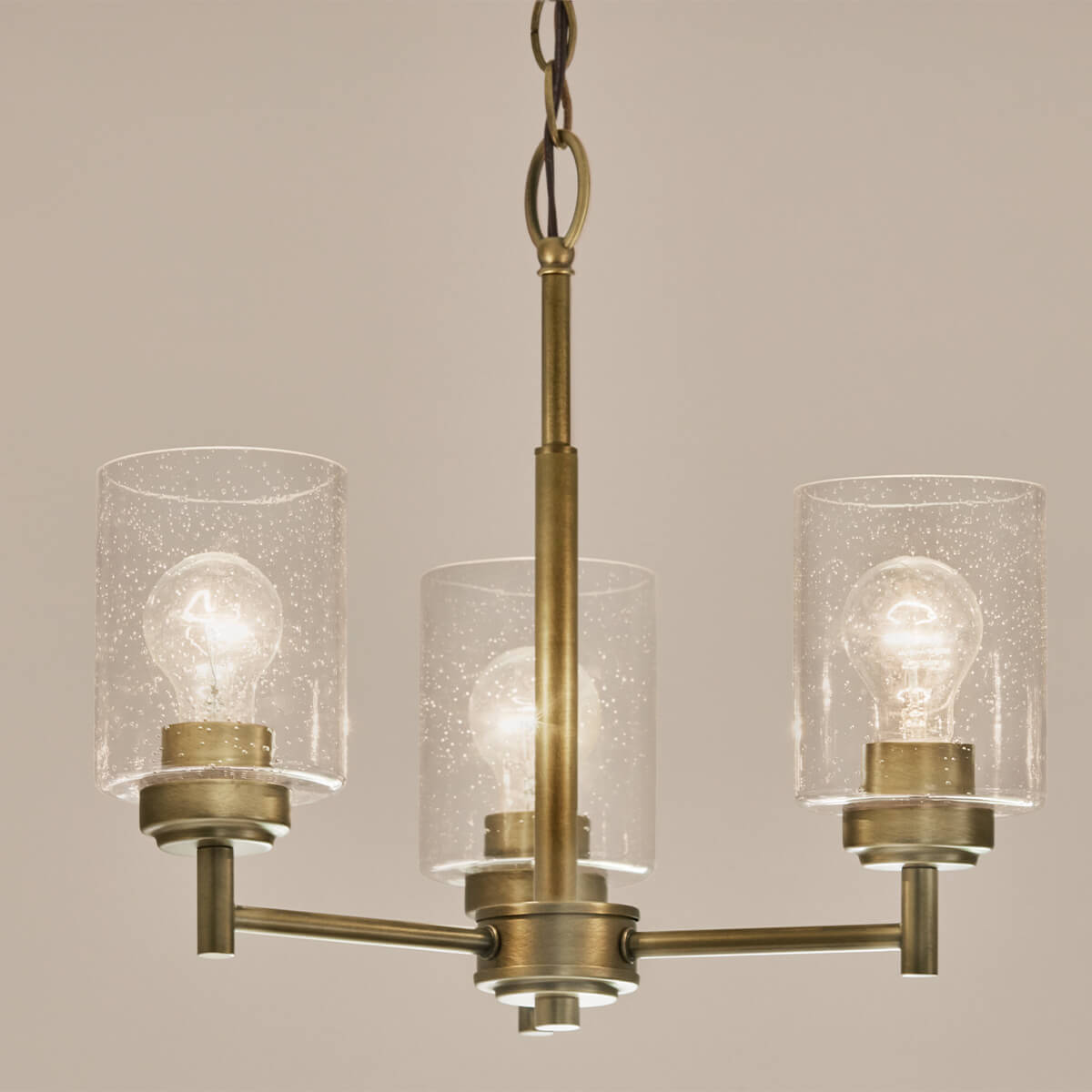 Elstead Winslow Kronleuchter E27  3-fach Naturmessing Glas mit Luftbläschen