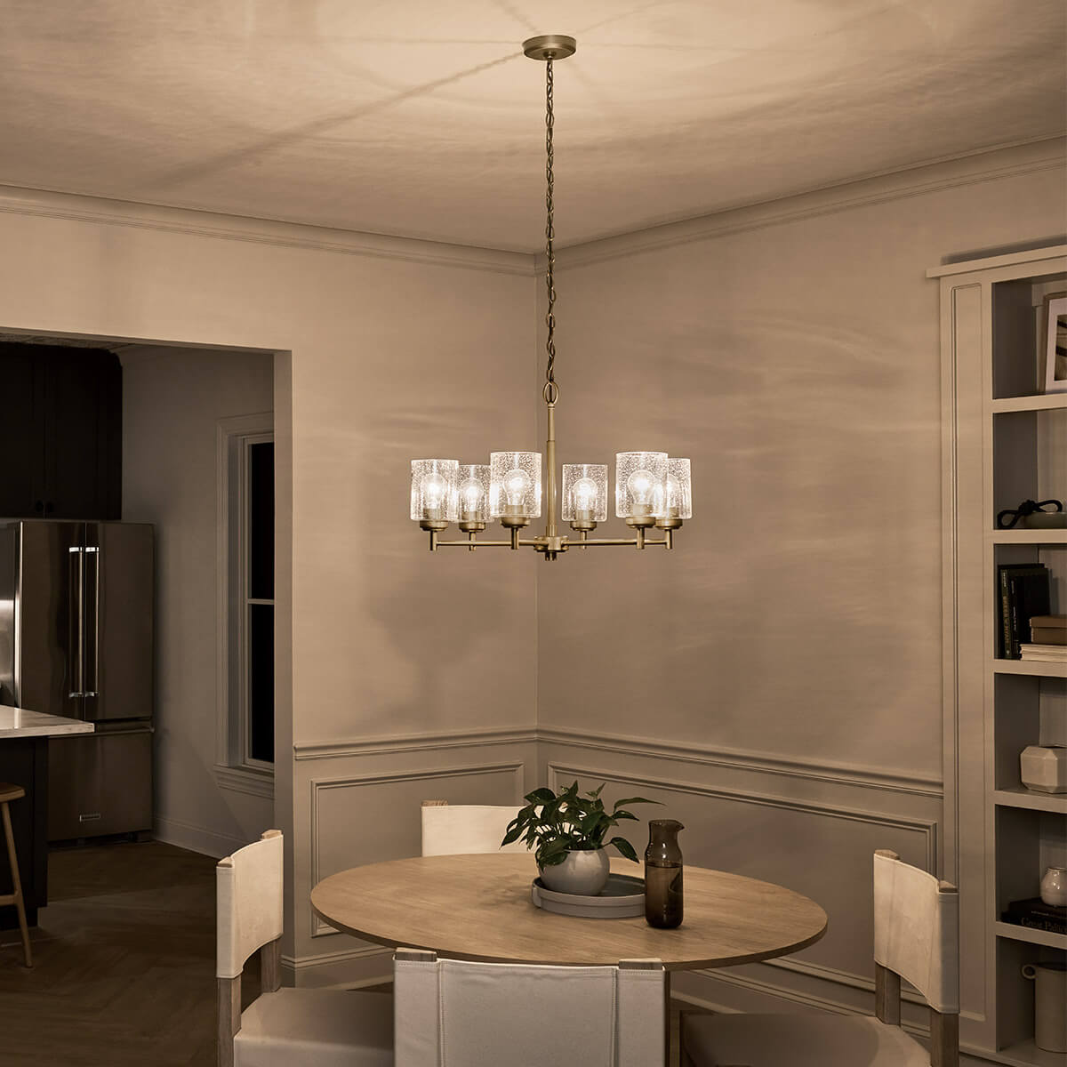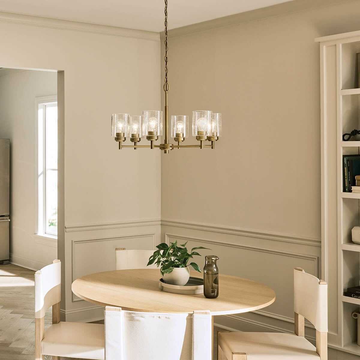 Elstead Winslow Kronleuchter E27 6-fach Naturmessing Glas mit Luftbläschen