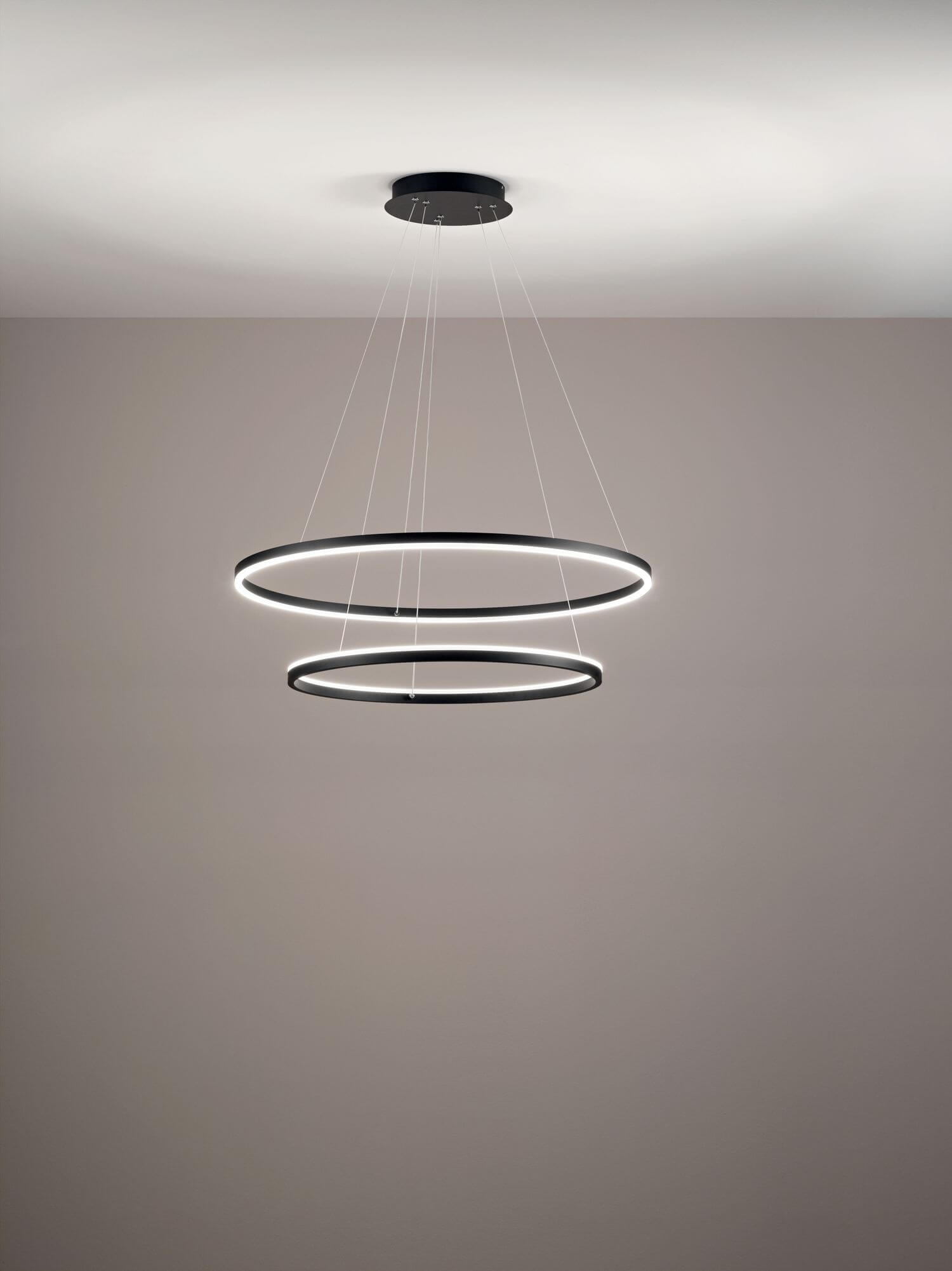 Fabas Luce LED Pendelleuchte Giotto Ø800mm 37 + 28W Warmweiß Schwarz dimmbar