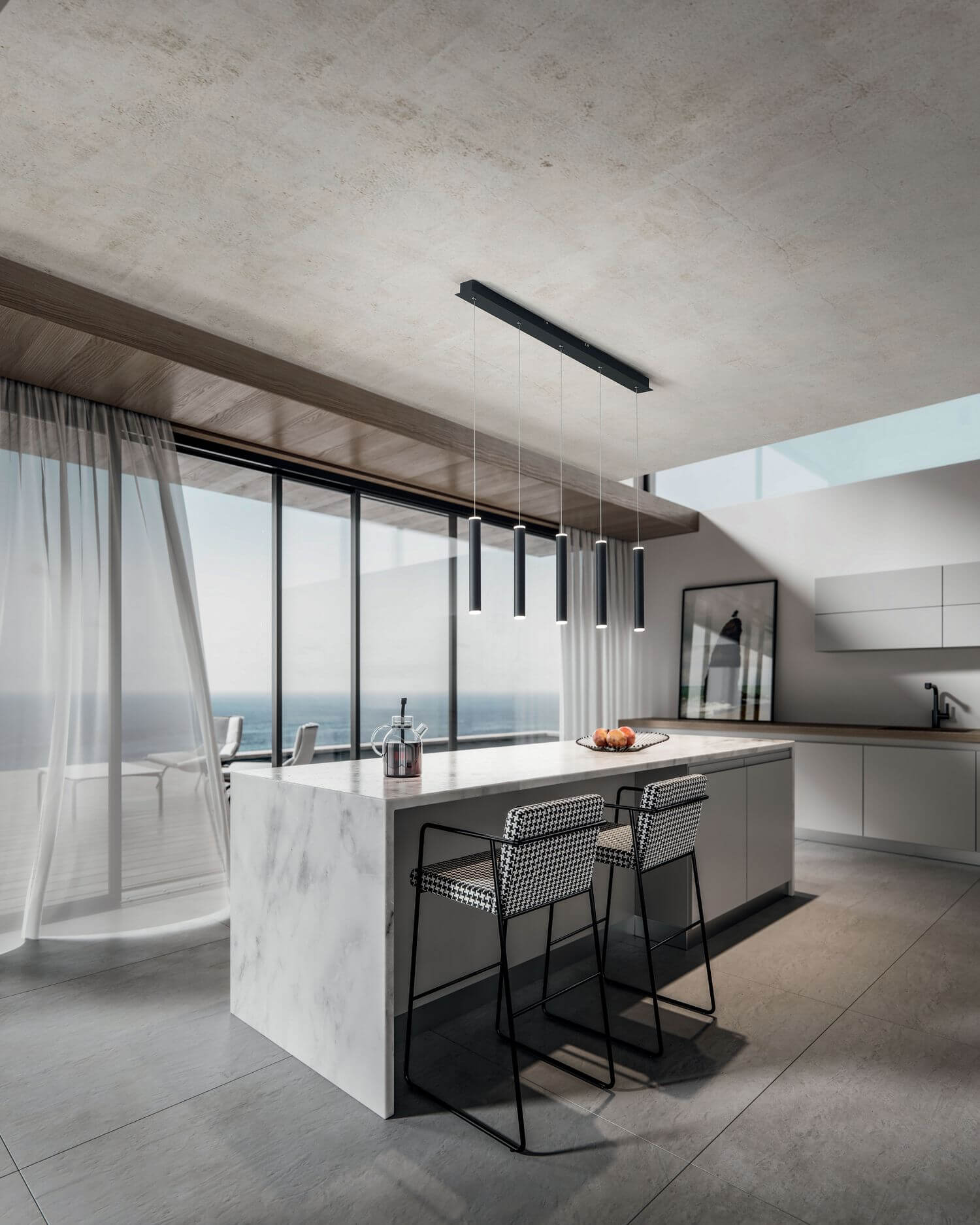 Fabas Luce LED Pendelleuchte Prado 2000x80mm 33W Warmweiß Schwarz dimmbar