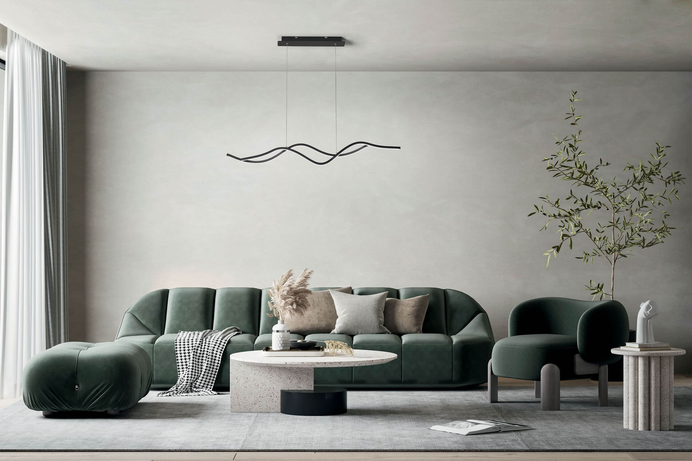 Fabas Luce LED Pendelleuchte Sinuo 2000x70mm 36W Warmweiß Schwarz dimmbar