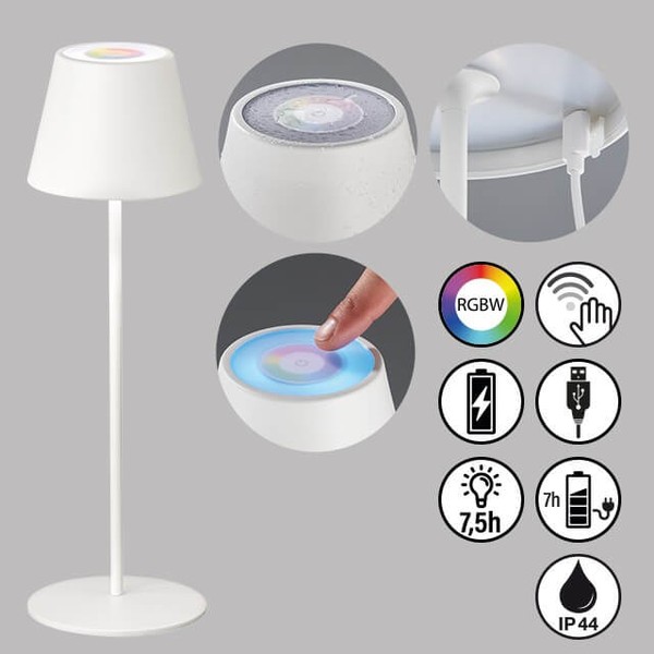 • FHL Cosenza LED Akku-Außenleuchte USB 1,68W RGBW steuerbar dimmbar sandweiß IP44 850211.