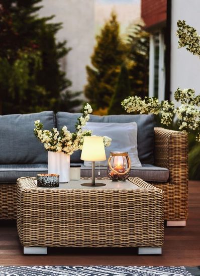 FHL Garden LED Akku-Outdoorleuchte, Außen-Tischleuchte IP44 1,7W warmweiss RGB-Farbsteuerung dimmbar sandanthrazit