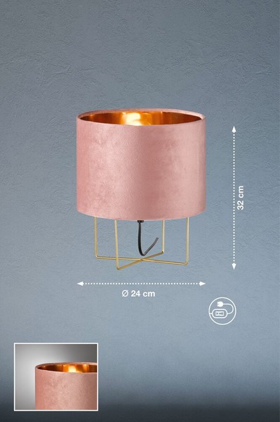 Preview: Fischer & Honsel Aura Tischlampe, Tischleuchte E27 Stoffschirm rose samt gold 50393