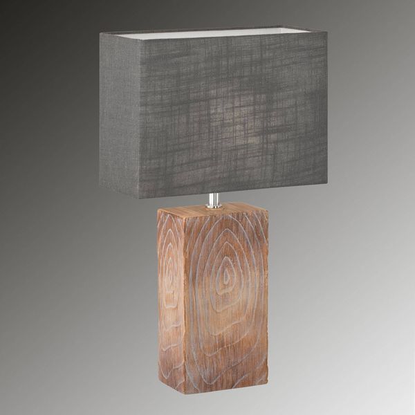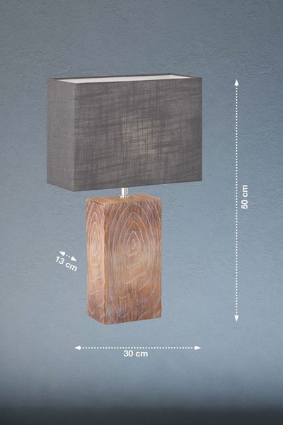 Preview: Fischer & Honsel Bronco Tischleuchte E14 Stoffschirm Leinen grau holz 50603