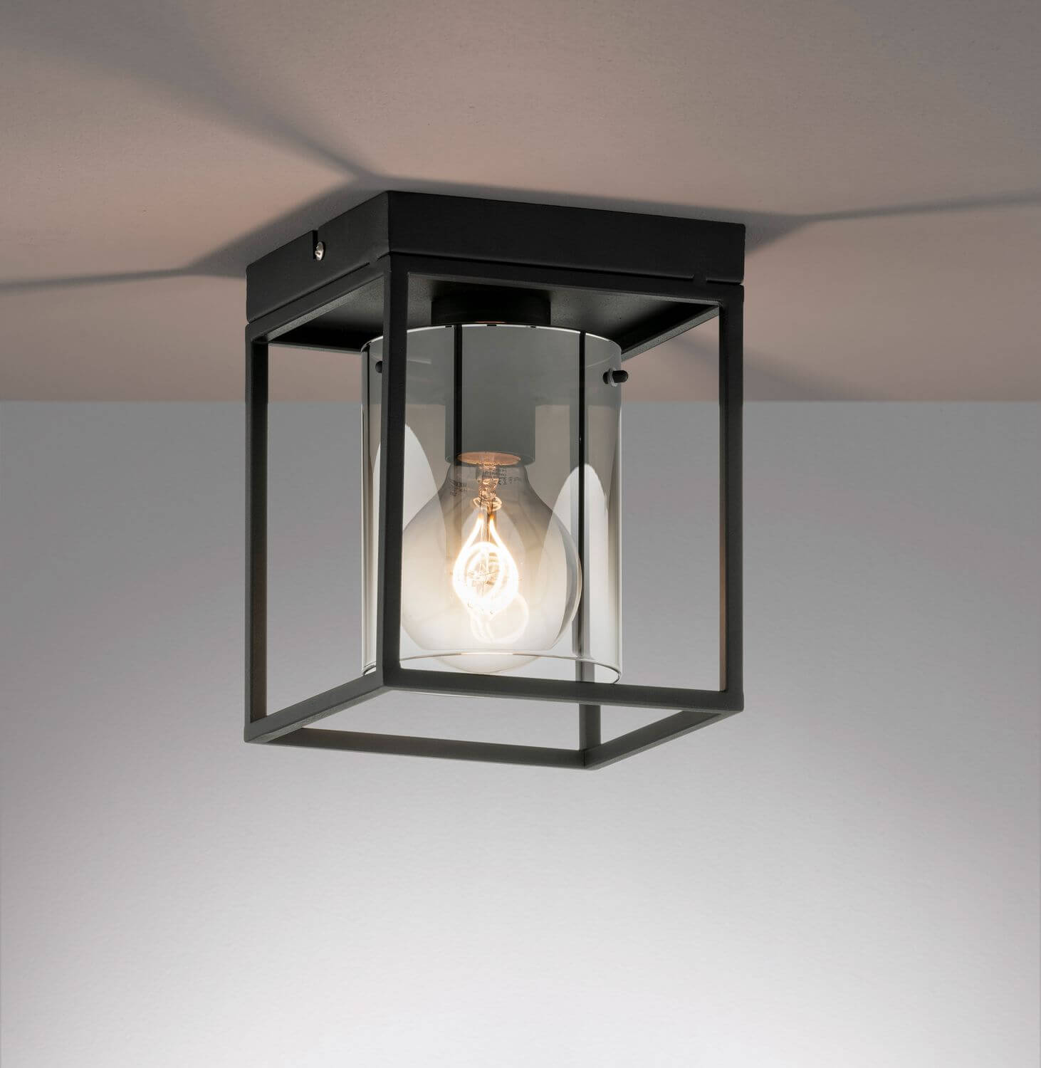 Fischer & Honsel Samu Deckenleuchte E27 Glas rauchfarben sandschwarz 21303