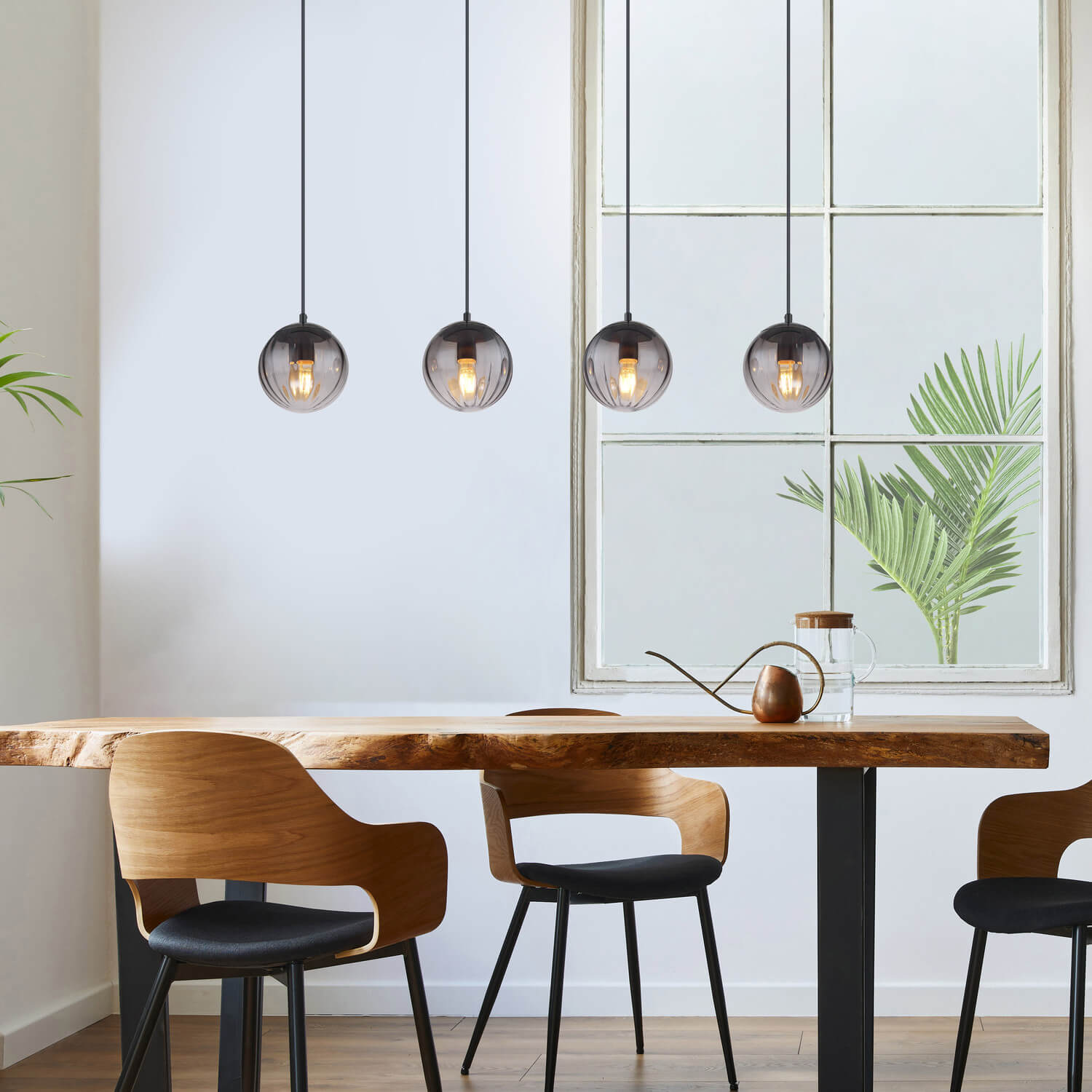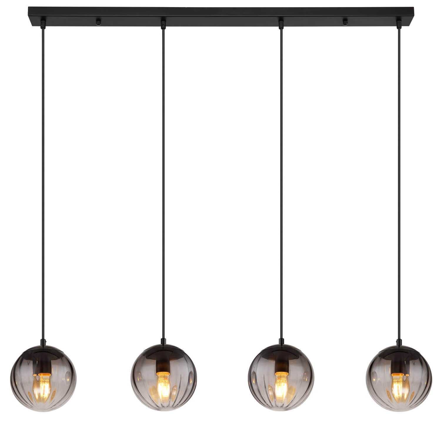 Form & Design: Schiene gerade, 4 Hänger mit Glaskugeln mit Rillen