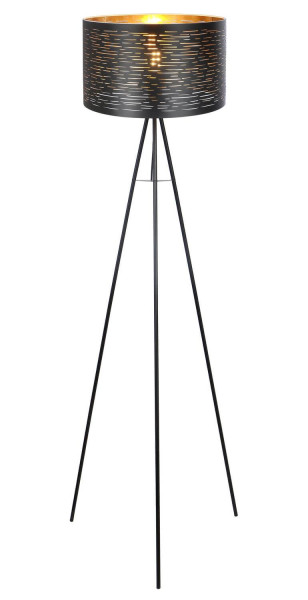Stehleuchte Metall schwarz, Kunststoff schwarz, goldfarben, Fußtrittschalter im Kabel, ø: 690mm, H: 1530mm, Kabellänge 1800mm, exkl. 1x E27 40W 230V