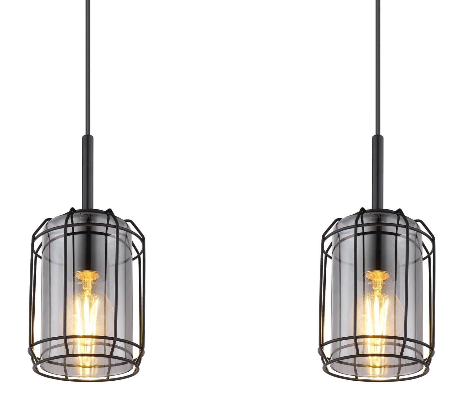 • Diese Hängelampe aus der Kammi-Serie ist eine stilvolle Ergänzung für Ihren Wohn- oder Essbereich. Die 77 cm lange Hängeleuchte besteht aus drei rauchigen Glasschirmen, die mit einem schwarz-matten Metallgitter ummantelt sind und an Kabeln bis zu 120 cm von der Decke hängen. Außerdem können Sie mit E27-Leuchtmitteln Ihrer Wahl bestückt werden, wodurch Sie die Möglichkeit haben, Lichtfarbe und Helligkeit individuell zu bestimmen. Durch weitere Modelle der gleichen Serie können Sie das Gesamtbild in Ihren vier Wänden komplettieren.