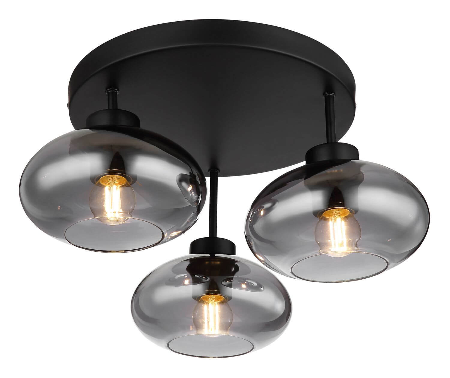 Deckenleuchte Metall schwarz matt, Glas rauchfarben, ø: 400mm, H: 240mm, exkl. 3x E27 40W 230V