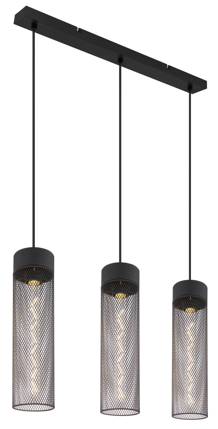 • Globo Hans E27 Hängeleuchte 3-fach 40W Schwarz Matt, Metall Ø9,5cm 15649-3H