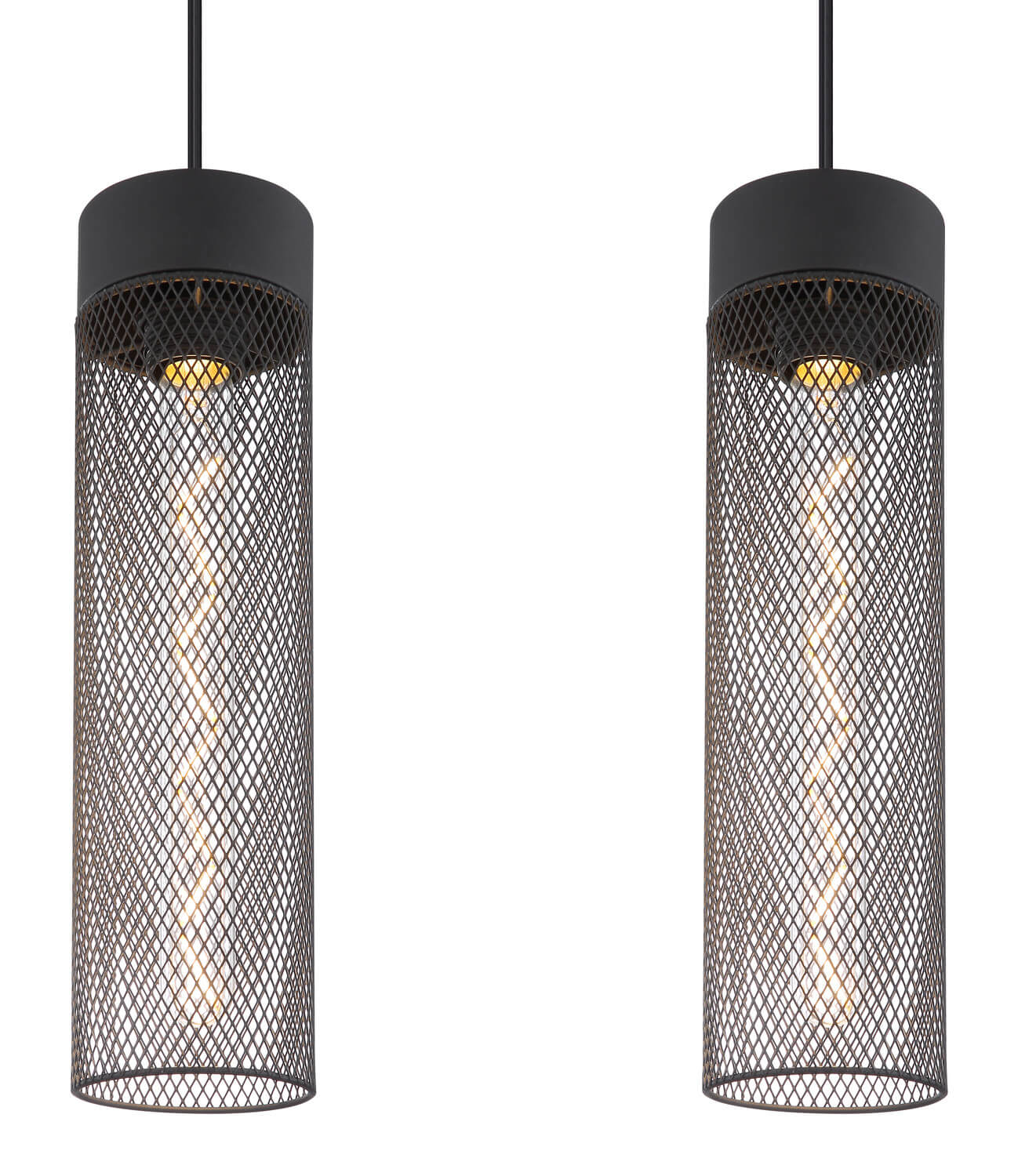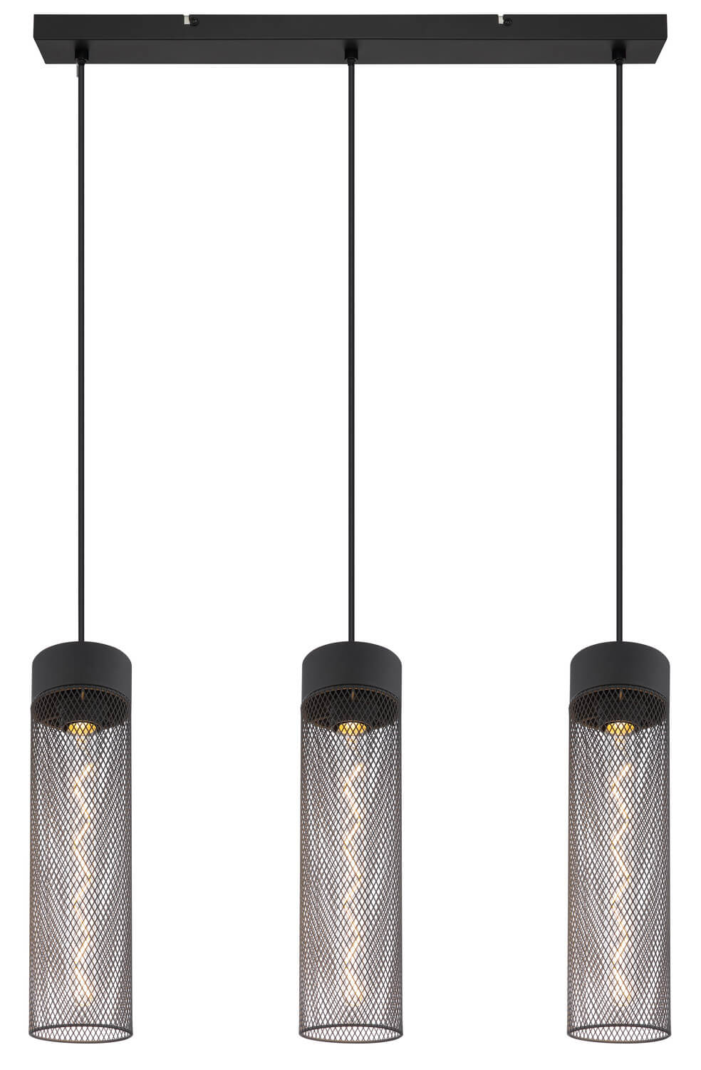 Form & Design: Schiene gerade, 3 Hänger mit Metallgeflecht-Zylinder