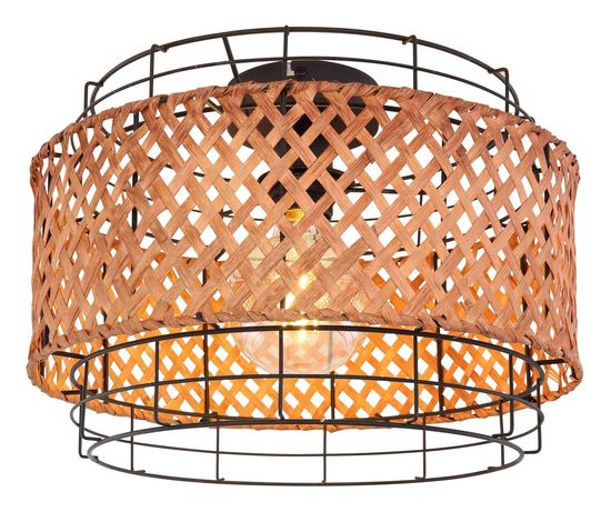 Deckenleuchte Metall schwarz, Bambus dunkel, ø: 350mm, H: 245mm, exkl. 1x E27 40W 230V