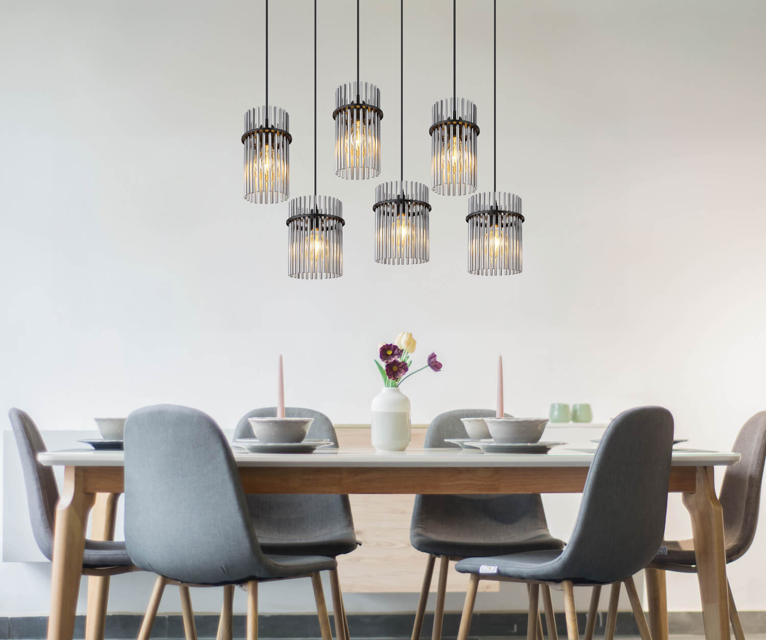 • Die Hängeleuchte ist mit 6xE27 Fassungen ausgestattet, somit haben Sie freie Wahl der E27 Lampen für eine individuelle Beleuchtung.