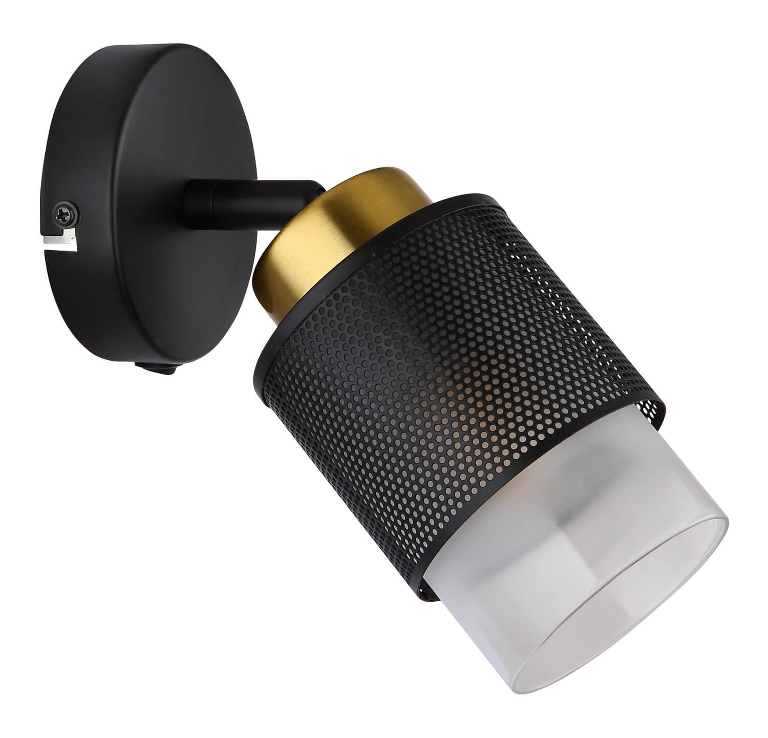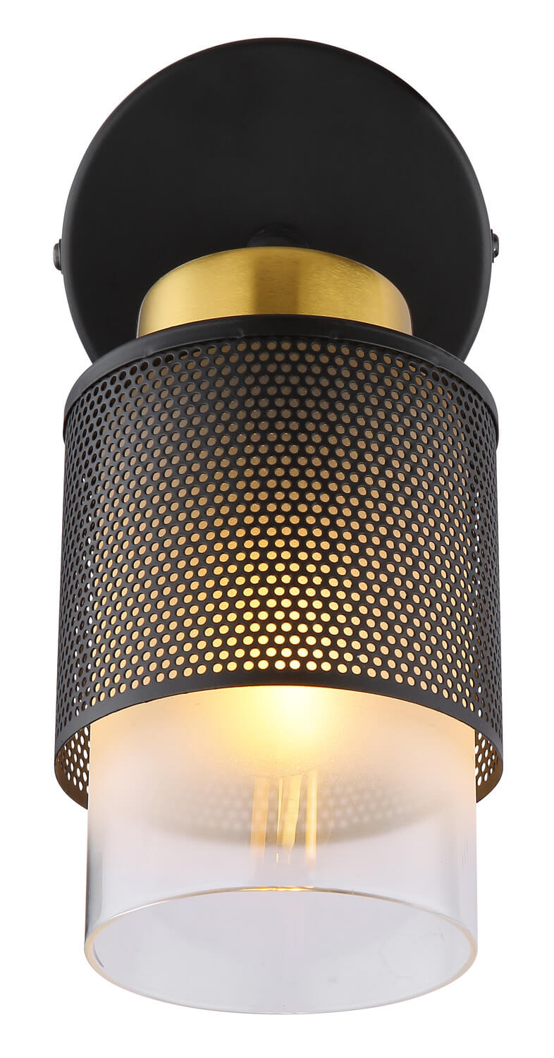 Form & Design: Wandschild rund, Glaszylinder mit gelochten Metall herum