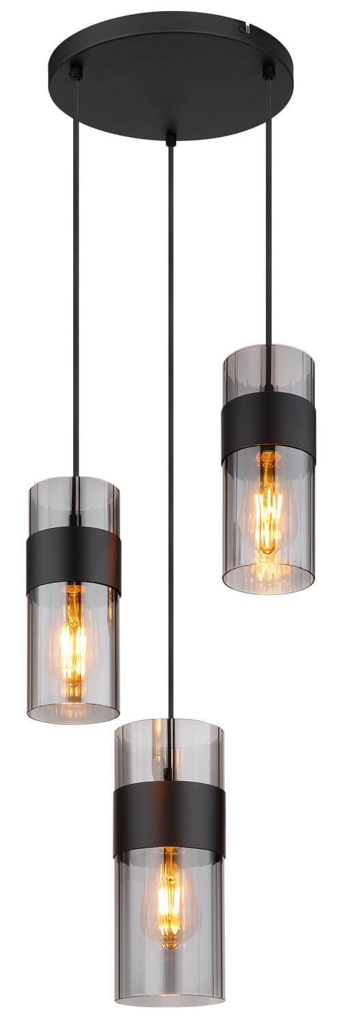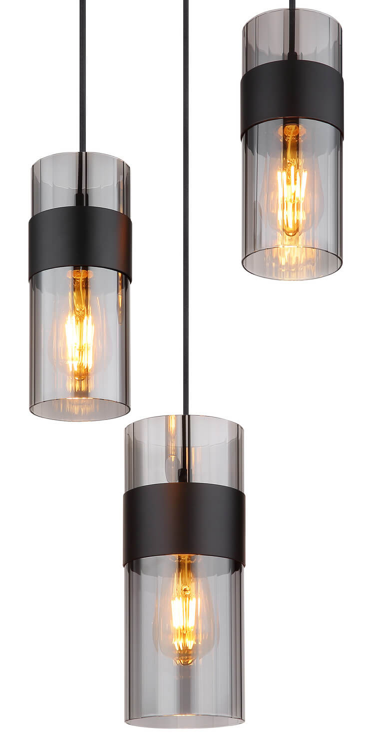 • Globo Scarfina E27 Hängeleuchte 3-fach 60W Schwarz Matt, Metall 150cm 15718-3