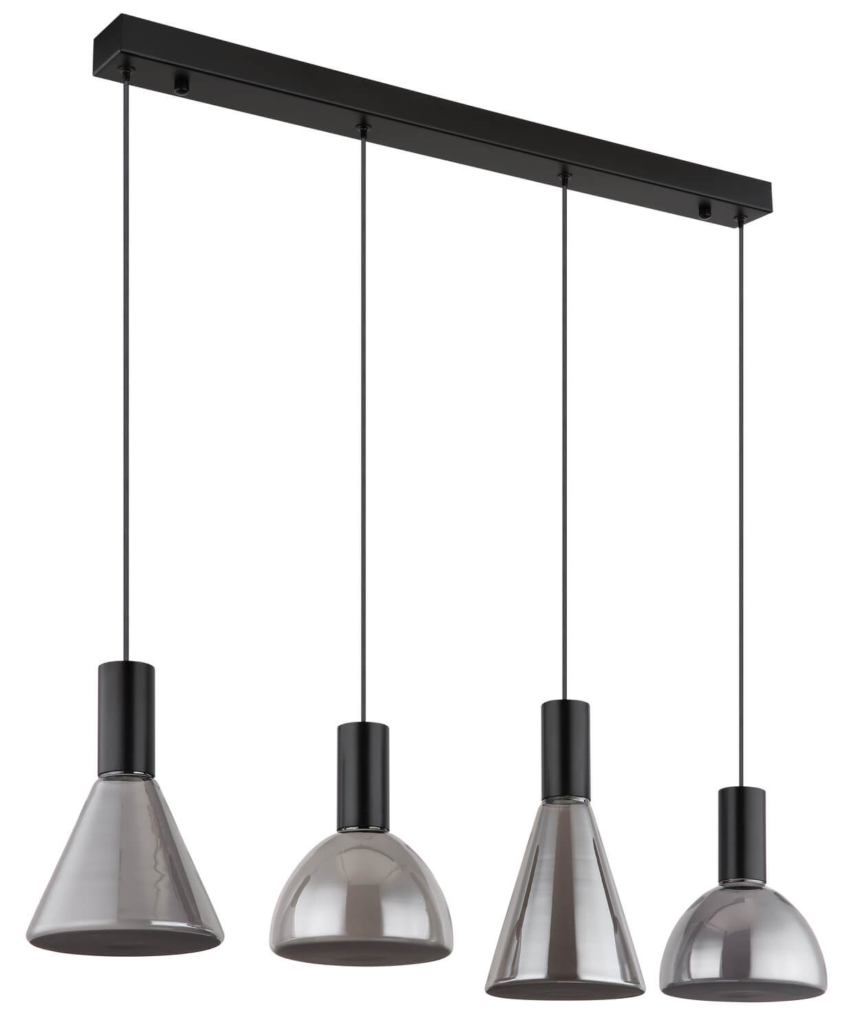 Form & Design: Schiene gerade, 4 Hänger, unterschiedliche Glasformen