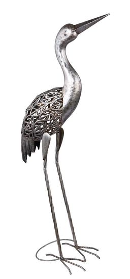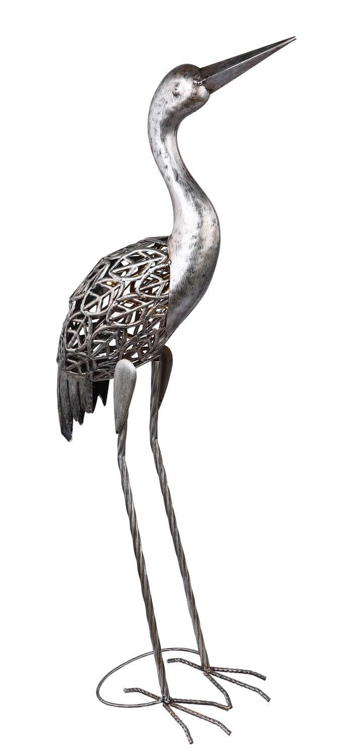 Solarleuchte Metall grau, antik, Akku inkludiert AA 300mAh 1.2V, IP44, Kranich, LxBxH: 290x150x770mm, inkl. LED 0.06W 3V, 3000K
