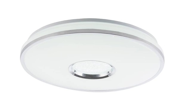 • Mit dieser Deckenleuchte Rena lassen sich die verschiedensten Lichtszenarien erzeugen, um einem Raum das ideale Ambiente zu verpassen. Sie können nach Lust und Laune, mit der mitgelieferten Fernbedienung die Farbtemperatur von 3000K bis hin zu 6000K verändern und fixieren. Außerdem können Sie das Licht nach Wunsch dimmen, so dass jeder für sich entscheiden kann wie hell man das Licht haben möchte. Die 49cm große Leuchte ist aus weißen Metall und opalen Acryl und in der Mitte der Leuchte befindet sich ein Sparkle-Dekormuster. Dank dem inkludierten 60 Watt LED-Leuchtmittel, leistet die Leuchte 4800 Lumen starkes Licht. Sie können die Deckenleuchte auch sehr gut mit anderen Modellen der Serie kombinieren und am besten lässt sie sich in ein Schlafzimmer integrieren.