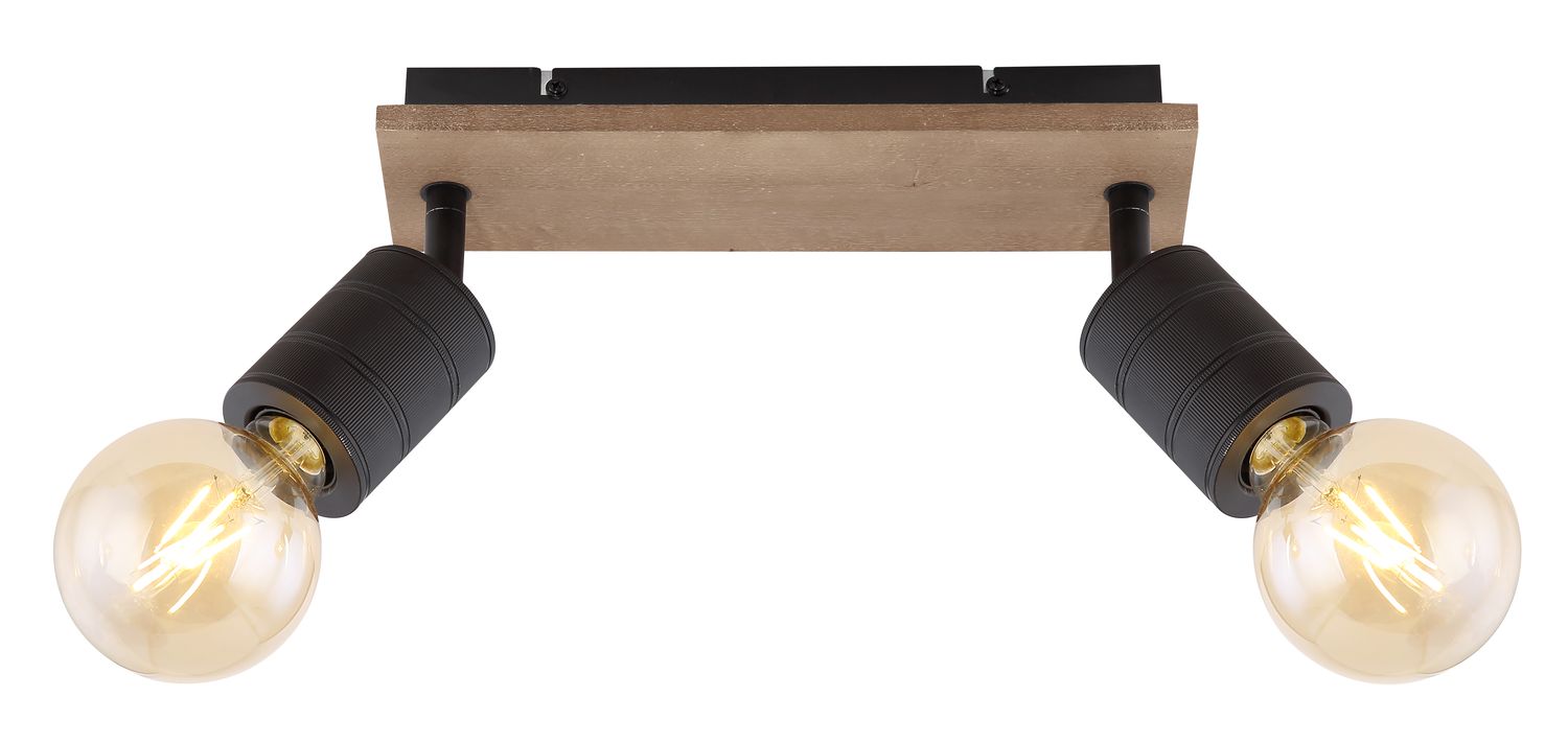 Strahler Holz dunkelbraun, Metall schwarz matt, LxBxH: 310x100x180mm, exkl. 2x E27 60W 230V