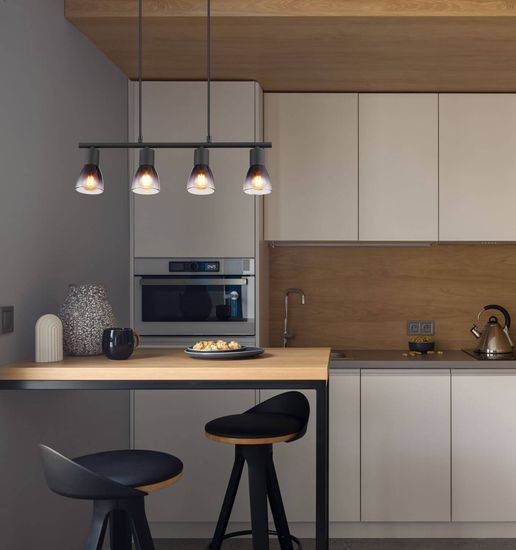 • Globo Satella Pendelleuchte 4-fach Schwarz Matt, Metall Ø7,2cm 54312-4