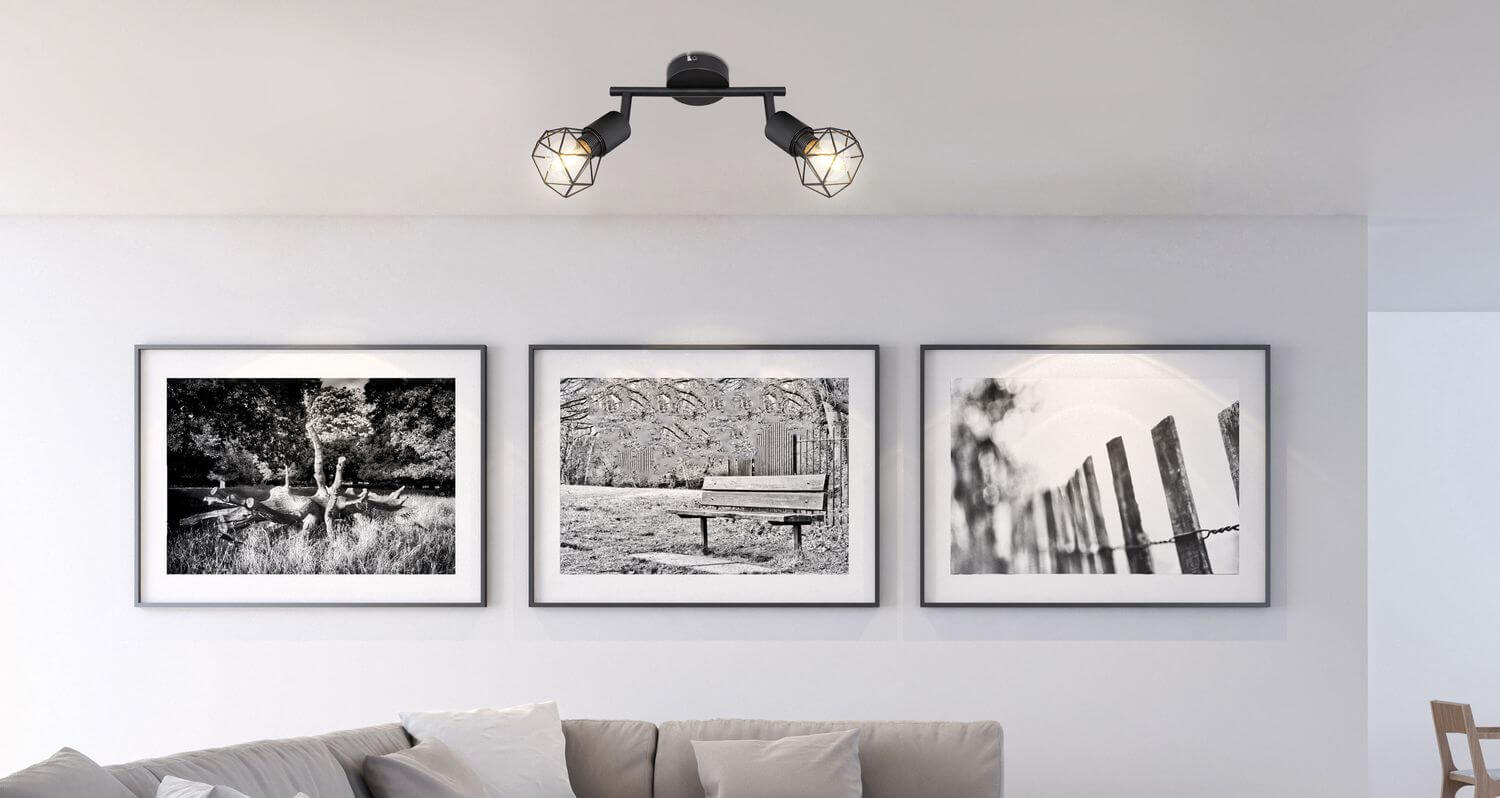 • Globo Xara I Strahler 2-fach Schwarz, Metall Ø8cm 54802S-2