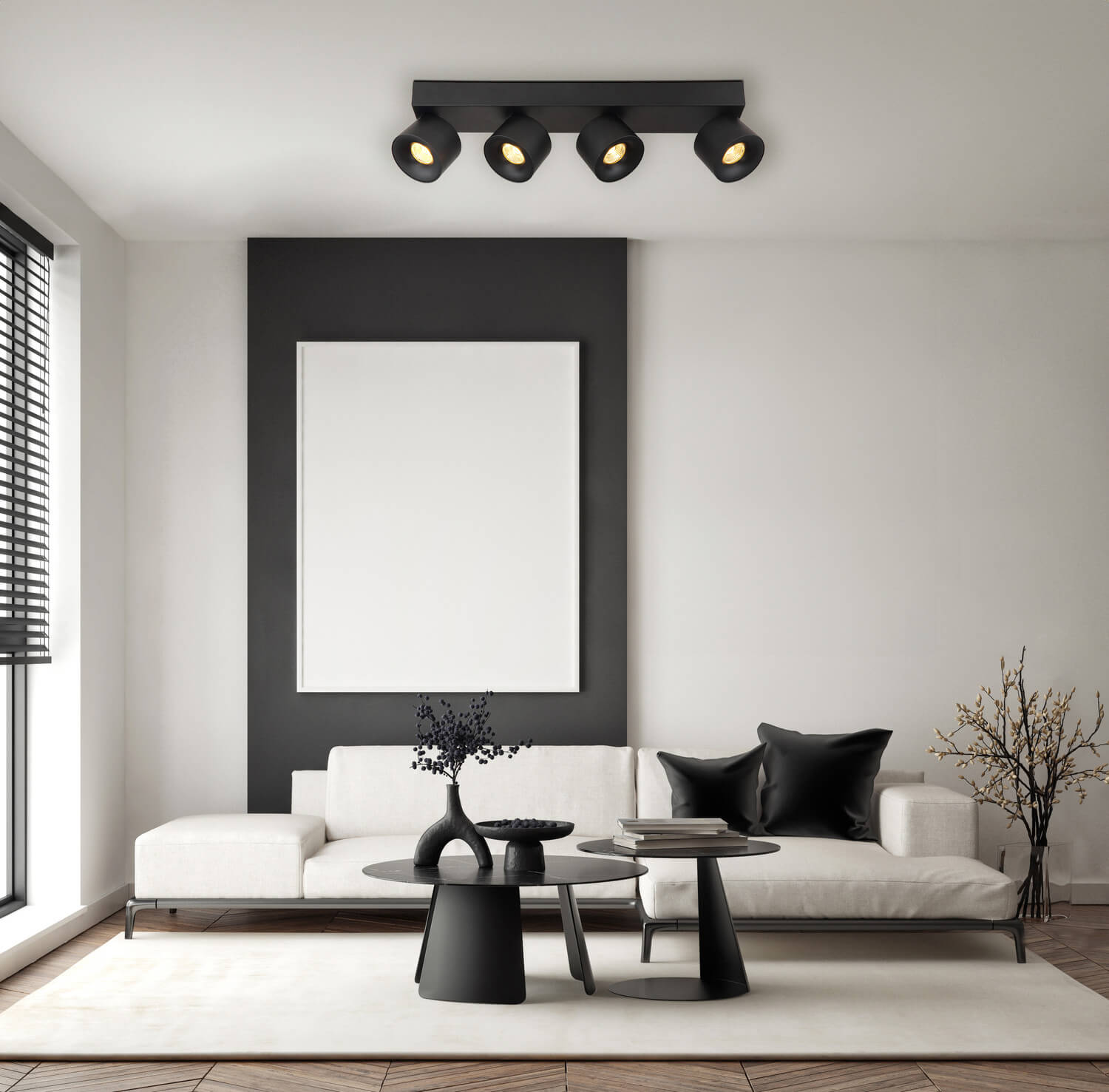 • Globo Rae LED LED Strahler 4-fach 6W Warmweiß Schwarz Matt, Metall Ø7,2cm 56961-4B